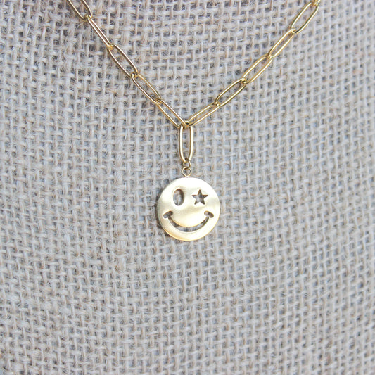 Starry Eyed Smiley Necklace- Tarnish Resistant